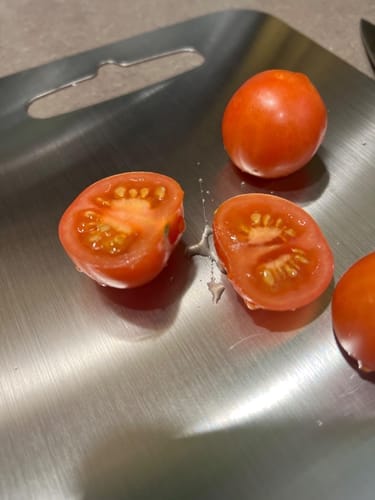 Drewno i plastik potrafią wchłaniać zapachy — szczególnie po cebuli, rybie czy czosnku — bo w nacięciach zostają resztki i wilgoć. Tytanova, dzięki gładkiej i nieporowatej powierzchni tytanu, nie chłonie aromatów jak tradycyjne deski, więc po szybkim spłukaniu wracasz do neutralnej, czystej deski.